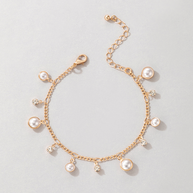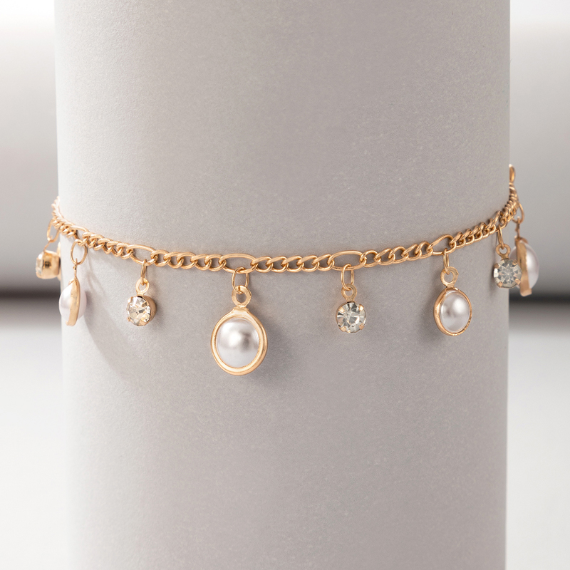 Fleepmart Colorful Rhinestone Anklets for Women Luxury Pearl Stone Foot Chain Barefoot Sandals Adjustable Bohemian Jewelry Gift
