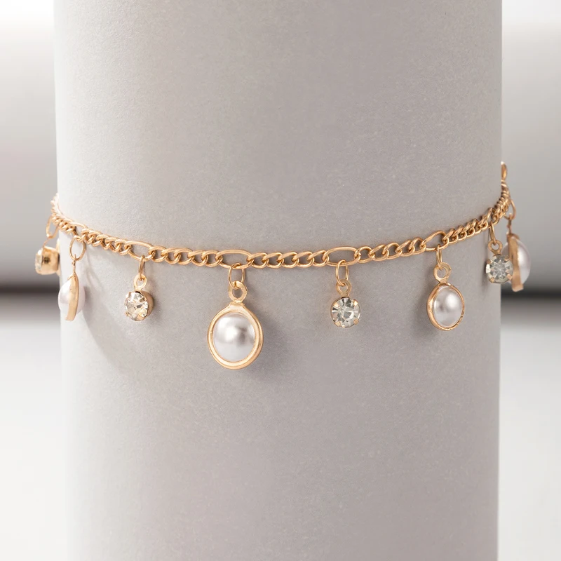 Fleepmart Colorful Rhinestone Anklets for Women Luxury Pearl Stone Foot Chain Barefoot Sandals Adjustable Bohemian Jewelry Gift