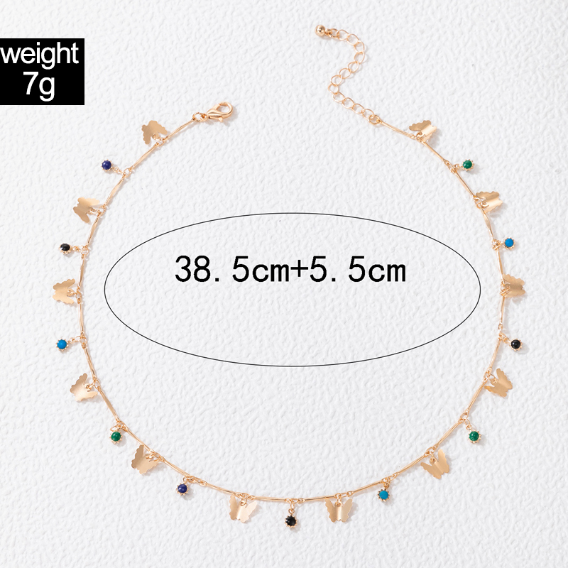 Fleepmart Colorful Rhinestone Chain Choker Necklace for Women Pretty Butterfly Heart Tassel Adjustable Clavicle Jewelry Collar