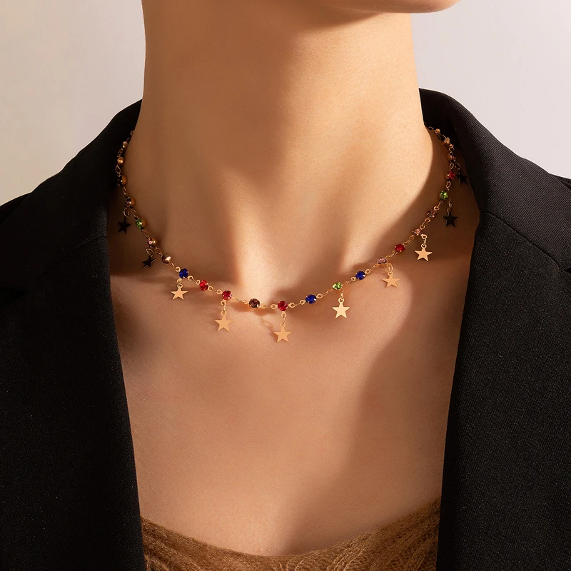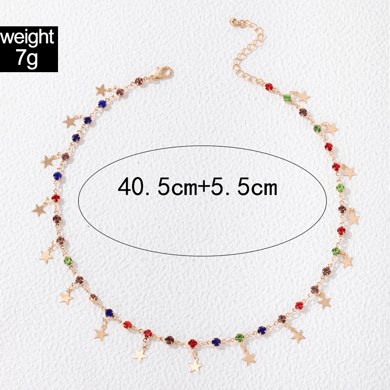 Fleepmart Colorful Rhinestone Chain Choker Necklace for Women Pretty Butterfly Heart Tassel Adjustable Clavicle Jewelry Collar