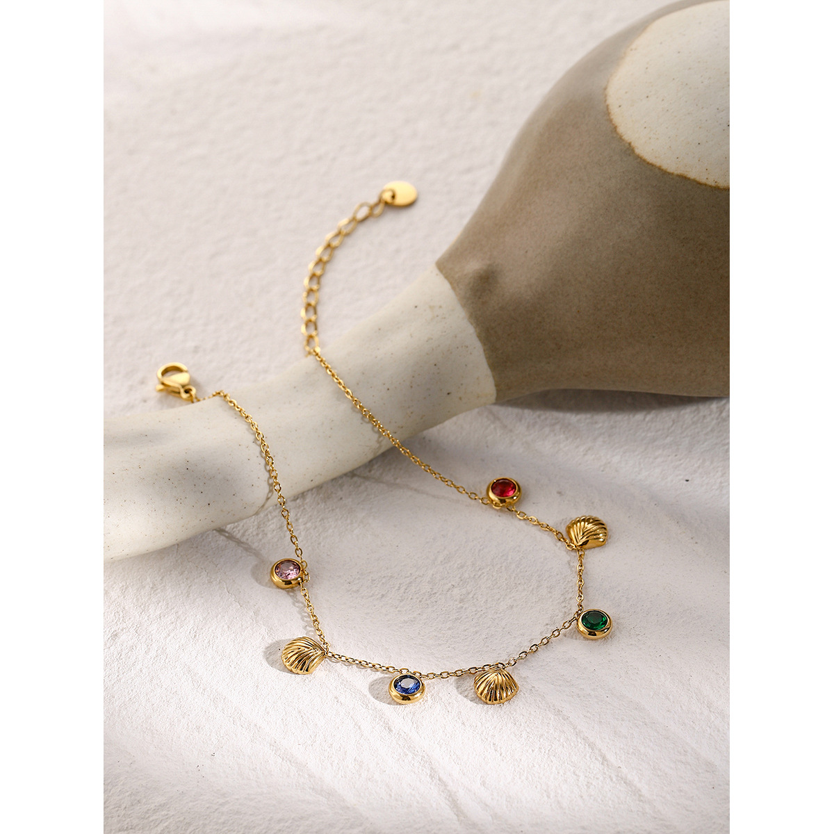 Fleepmart Colorful Shiny Cubic Zirconia Chain Anklet Women Stainless Steel High-Grade Delicate Jewelry Gift