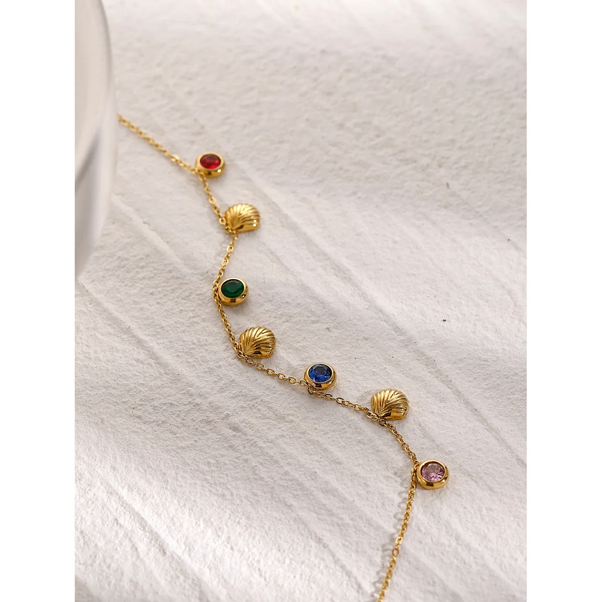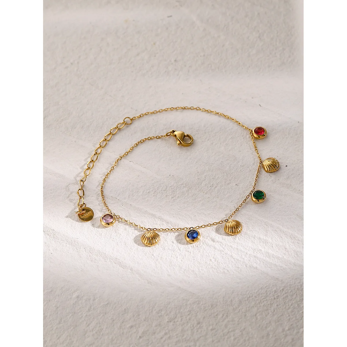 Fleepmart Colorful Shiny Cubic Zirconia Chain Anklet Women Stainless Steel High-Grade Delicate Jewelry Gift