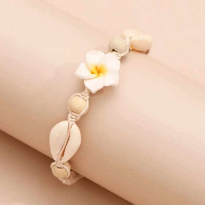 Fleepmart Conch Beads Braiding Anklets Cute Little Daisy Flower Foot Chain for Women Girls Summer Beach Accessories