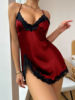 Fleepmart Contrast Lace Satin Nightdress Deep V Backless Lace Up Split Slip Sleep Dress Women’s Nightdress