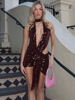 Fleepmart Coquettish Shiny Sequins Dress Women Halter Scarf+Sexy Deep V-Neck Backless Sleeveless Ruched Ribbon Club Hottie Outfits