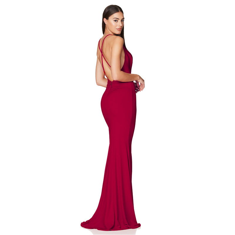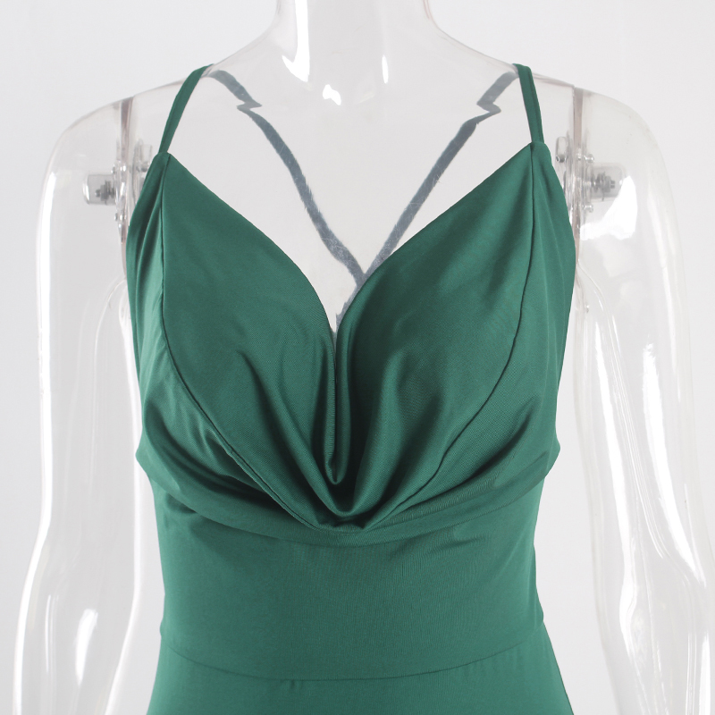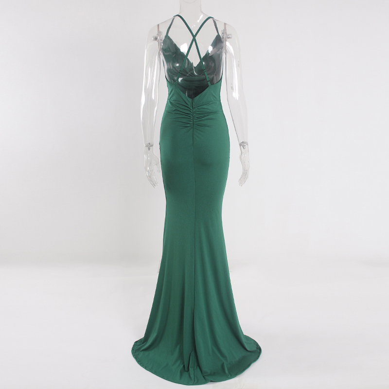 Fleepmart Cowl Neck Backless Sexy Long Solid Evening Party Dress Sleevelss Split Side Stretchy Pleated Maxi Gown 2022 Summer