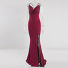 Fleepmart Cowl Neck Backless Sexy Long Solid Evening Party Dress Sleevelss Split Side Stretchy Pleated Maxi Gown 2022 Summer