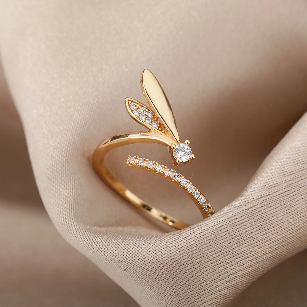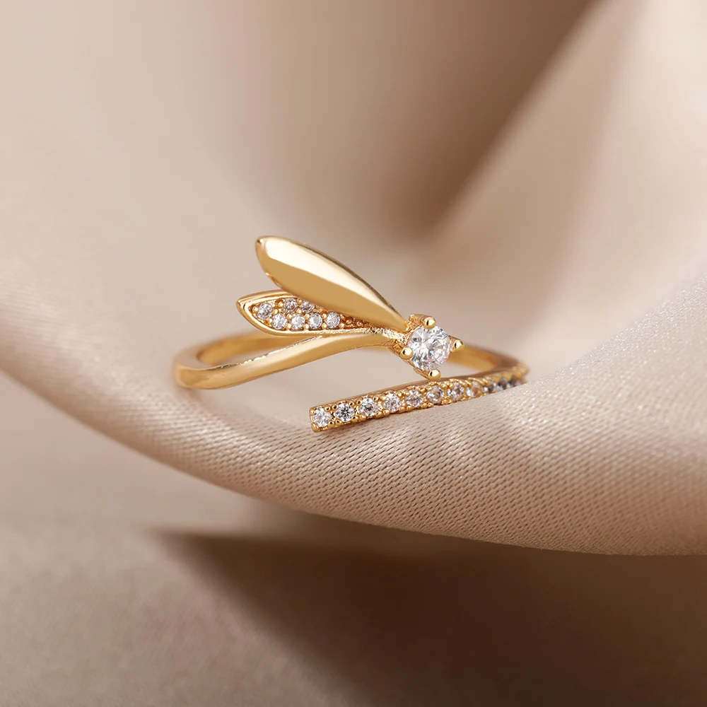 Fleepmart Creative Cute Wing Rings Women Stainless Steel Zircon Animal Adjustable Finger Ring Bohemian Jewelry
