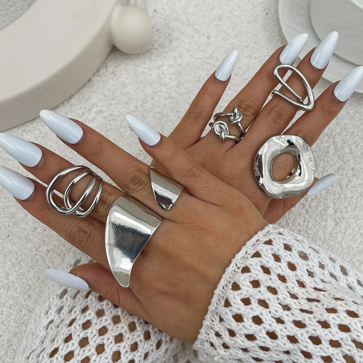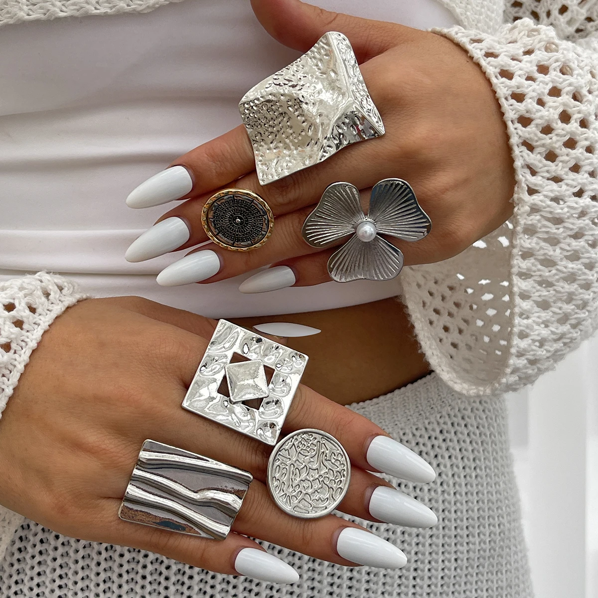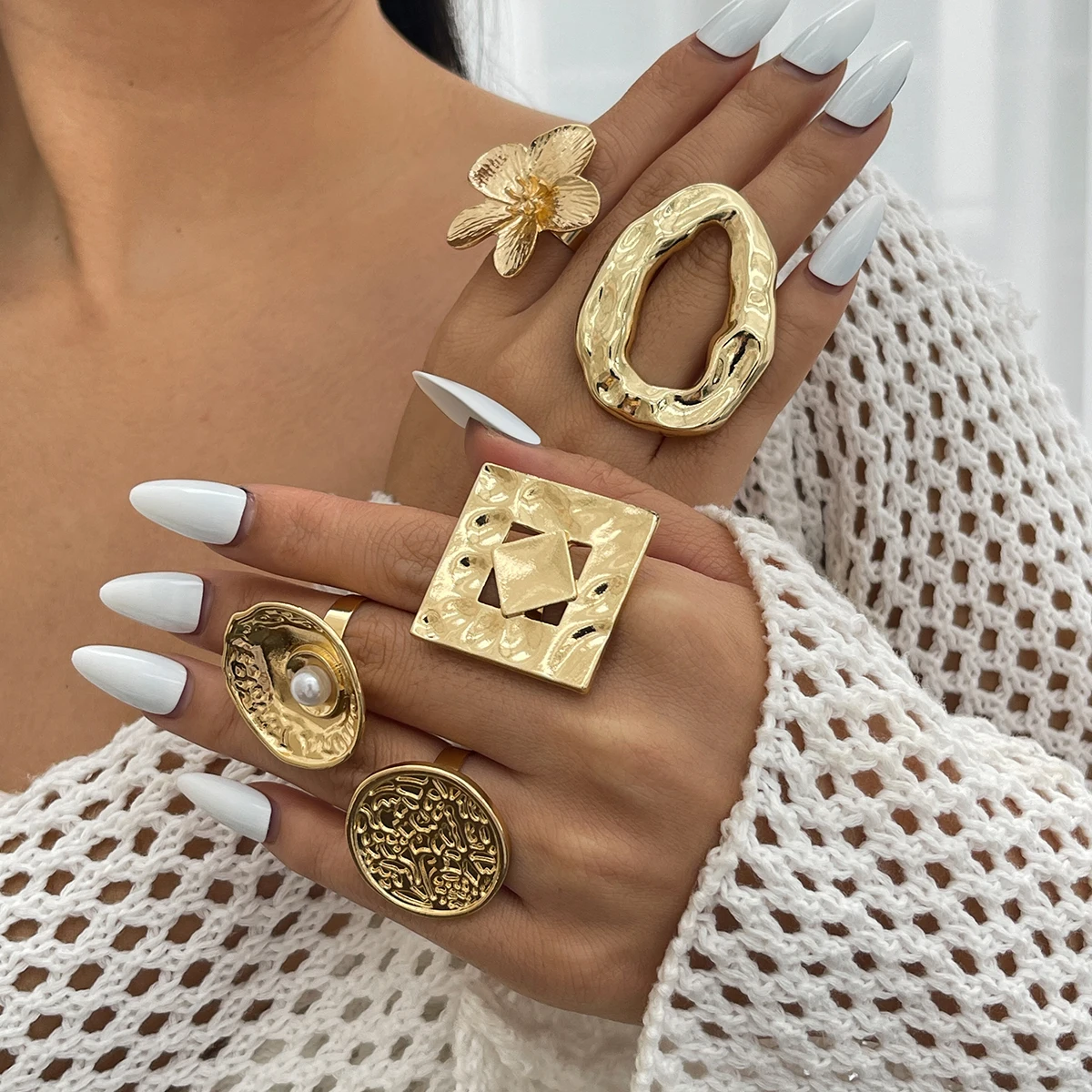 Fleepmart Creative Irregular Geometric Square Round Open Ring for Women Hip Hop Gold Color Adjustable Ring Finger Jewelry 2025 New