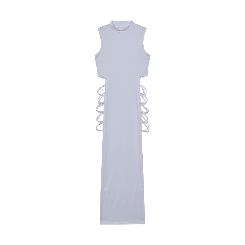 Fleepmart Criss Cross Cut Out Dress, Sexy Bodycon Mock Neck Sleeveless Dress, Women’s Clothing