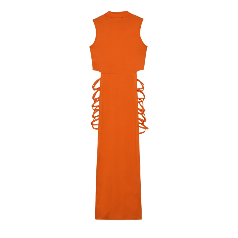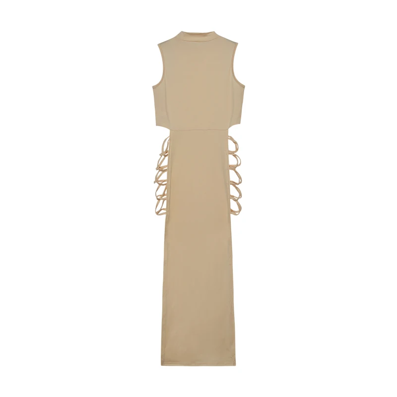 Fleepmart Criss Cross Cut Out Dress, Sexy Bodycon Mock Neck Sleeveless Dress, Women’s Clothing