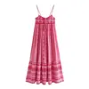 Fleepmart Crochet Bohemian Summer Dress for Women Spaghetti Strap Red Vintage Tassel Beach Dress Maxi Long Casual Sundress Autumn
