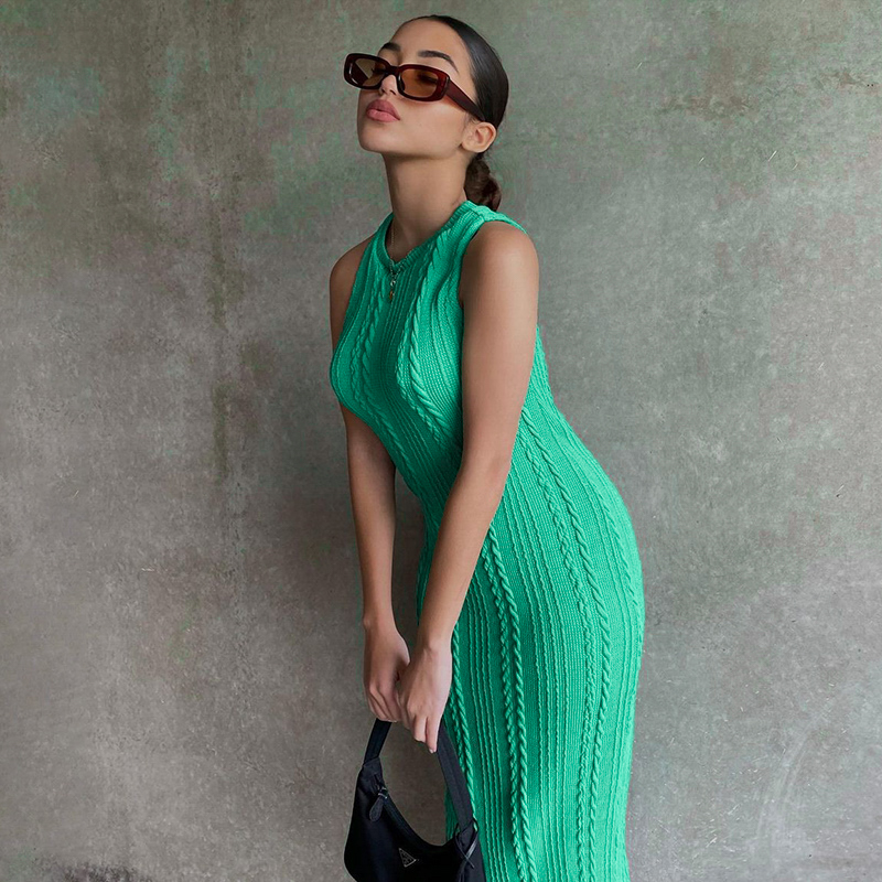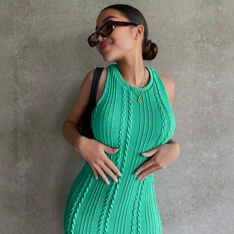 Fleepmart Crochet Sleeveless O-Neck Bodycon Solid Sexy Sweater Dress Summer Women Elegant Y2K Clothes Streetwear Party Club