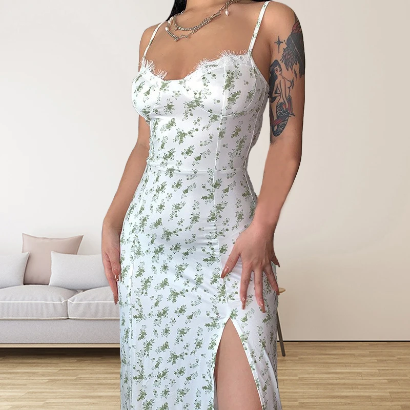 Fleepmart Cross border Women’s Wear 2023 Summer European and American Style Explosive Product New Small Fragmented Flower Split Sli