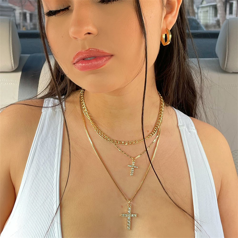 Fleepmart Cross Multilayer Necklace Set for Women Metal Gold Necklace Vintage Pearl Chokers Set for Women Trendy Chain Jewelry 2022