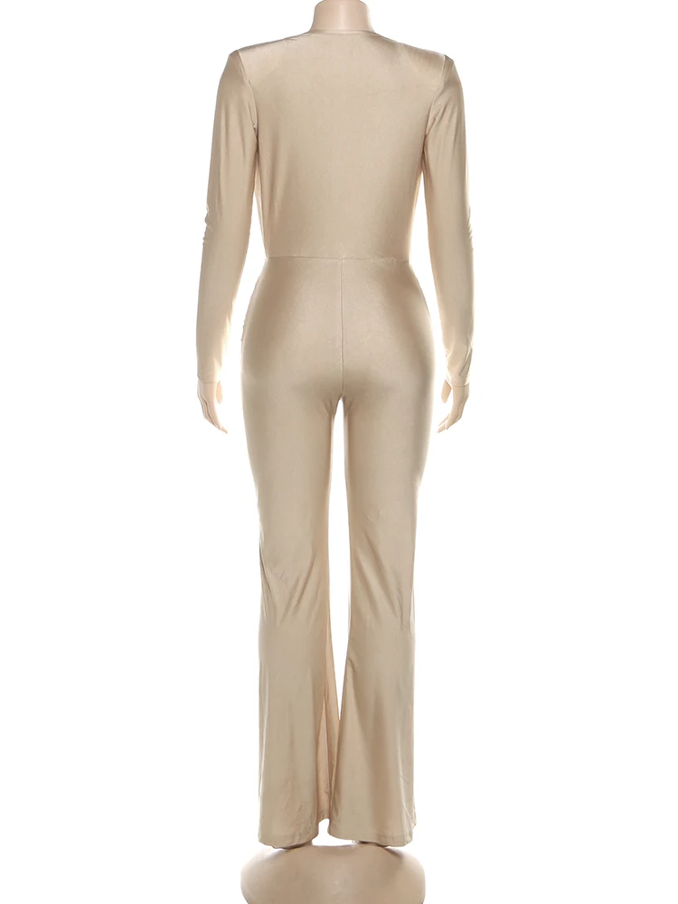 Fleepmart Cross Ruched Jumpsuit Women Patchwork Deep v-Neck Full Sleeve Elegant Skinny Stretch Workout Office Classic Overalls