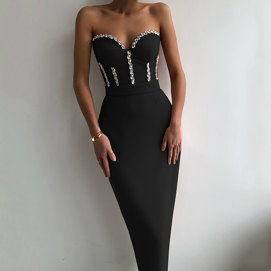 Fleepmart Crystal Bandage Dress for New Year 2022 Women Purple Bandage Dress Summer Strapless Sexy Party Dress Evening Club Outfits