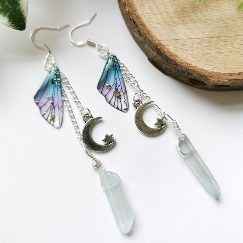Fleepmart Crystal Earrings, Butterfly Wings Long Chain Earrings, Irregular Crystal Earrings Romantic Bridal Jewelry