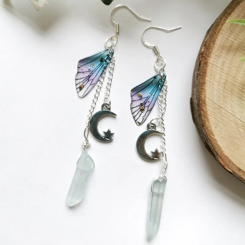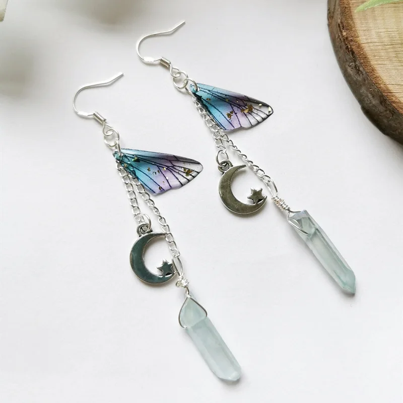 Fleepmart Crystal Earrings, Butterfly Wings Long Chain Earrings, Irregular Crystal Earrings Romantic Bridal Jewelry