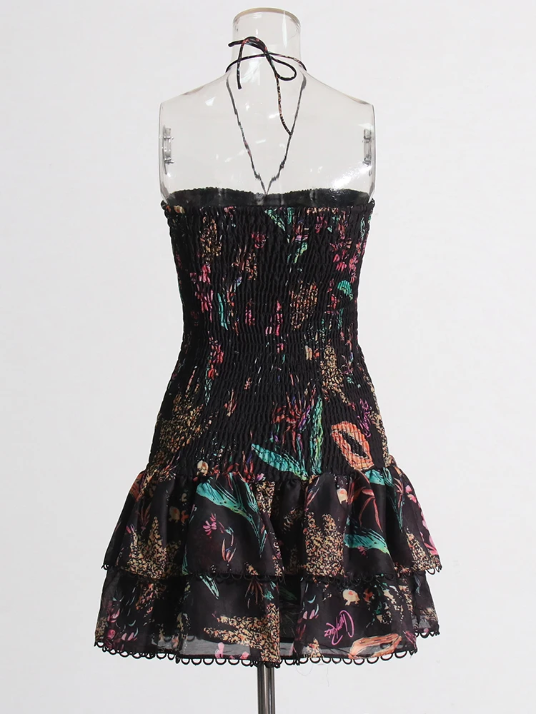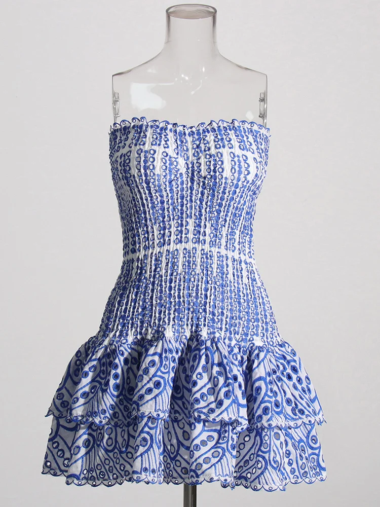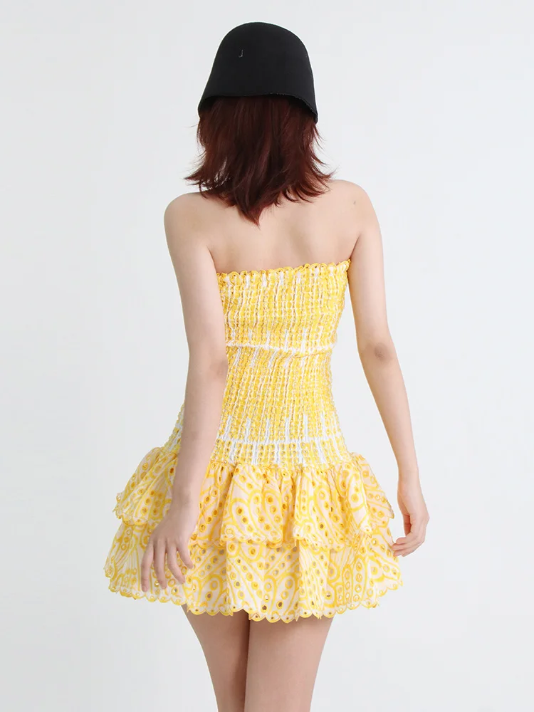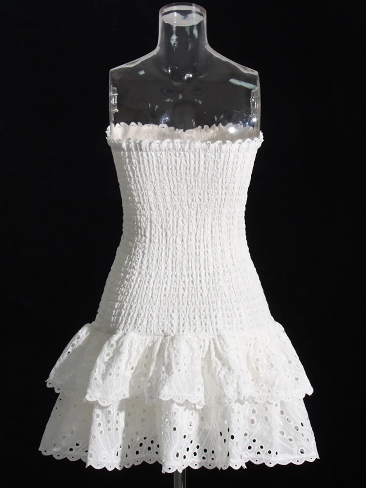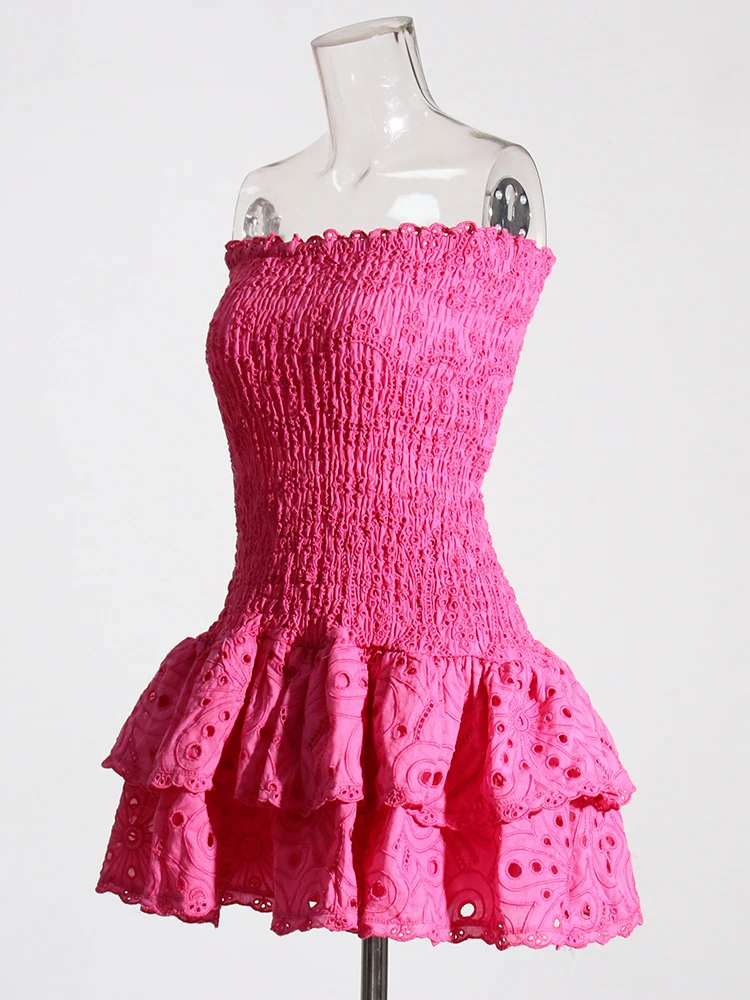 Fleepmart Cut Out Layered Hem Sexy Dress For Women Strapless Sleeveless Off Shoulder High Waist Mini Dresses Female Clothing