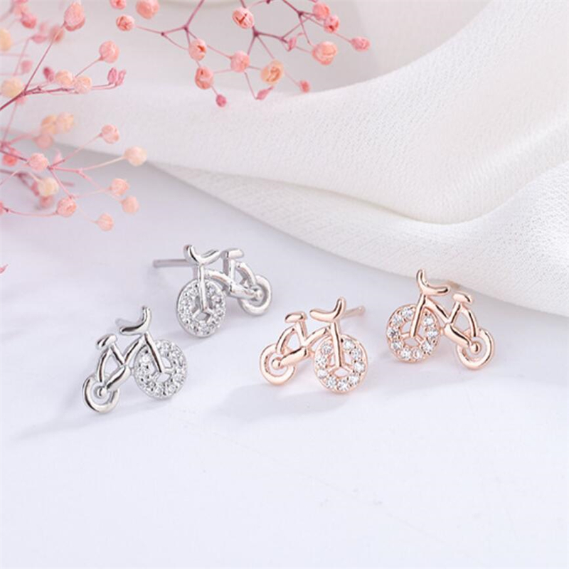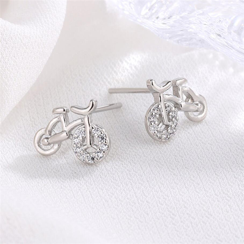 Fleepmart Cute Mini Stylish Bike 925 Sterling Silver Fashion Female Stud Earrings
