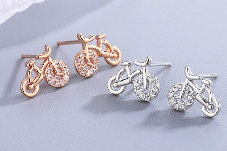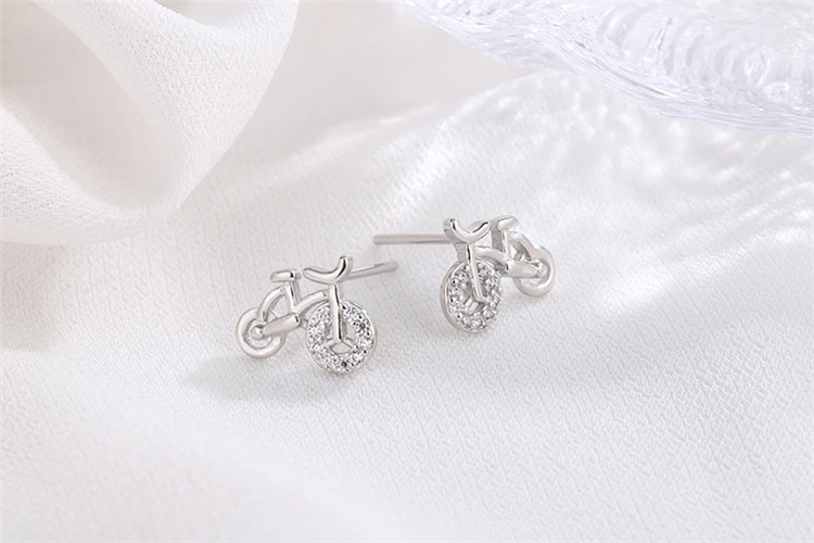 Fleepmart Cute Mini Stylish Bike 925 Sterling Silver Fashion Female Stud Earrings
