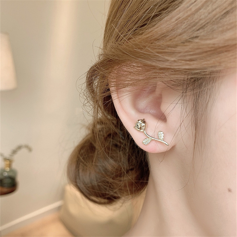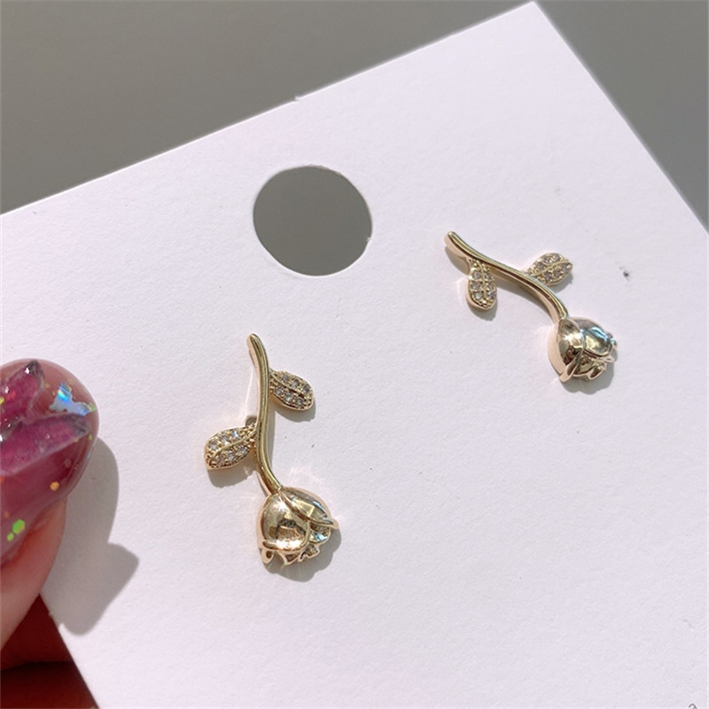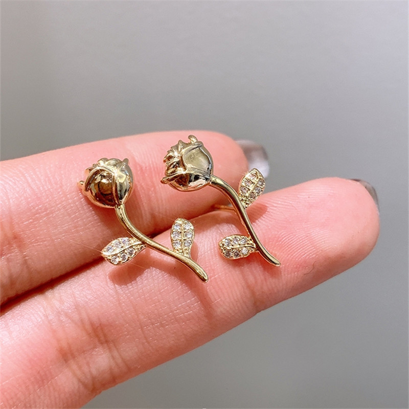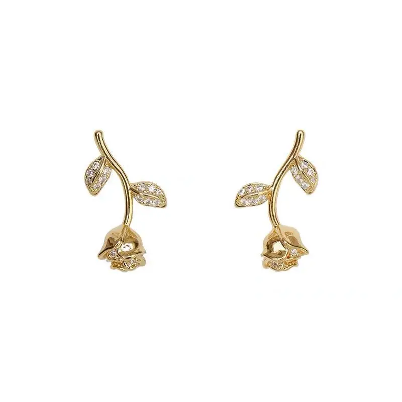 Fleepmart New Sight New Accessories Crystal Flower Stud Earrings for Women Simple Style Gift Elegant Rose Earrings