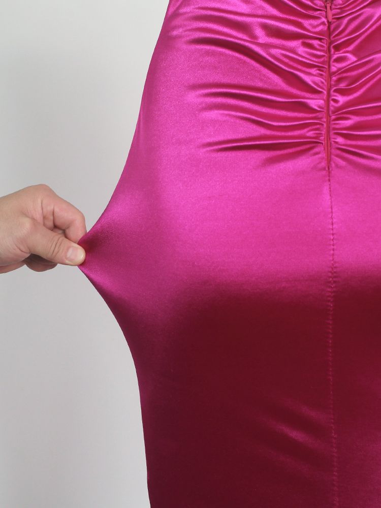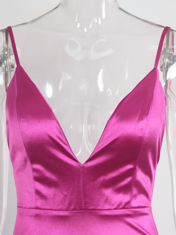 Fleepmart Deep V Neck Fuchsia Black Satin Maxi Dress Long Mermaid Bodycon Floor Length Open Back Stretch Cut Out Party Dress