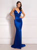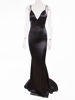 Fleepmart Deep V Neck Fuchsia Black Satin Maxi Dress Long Mermaid Bodycon Floor Length Open Back Stretch Cut Out Party Dress