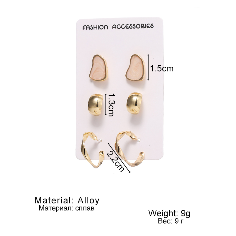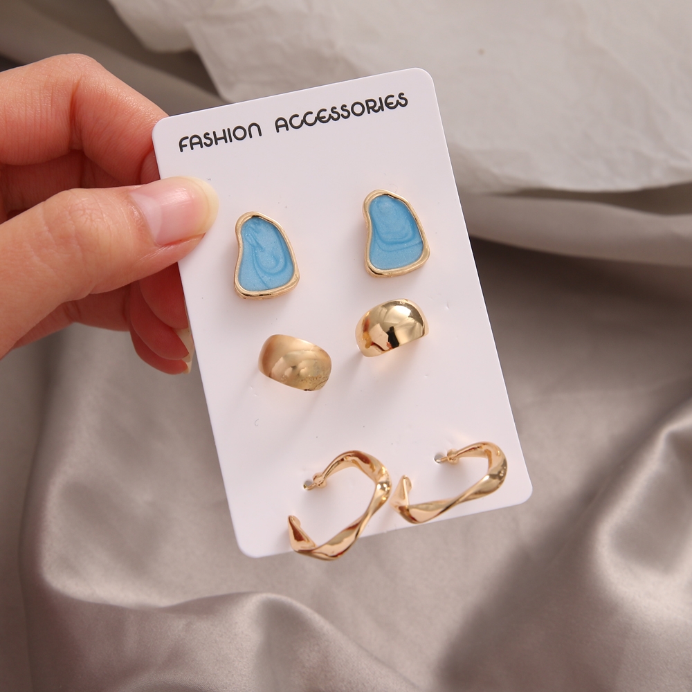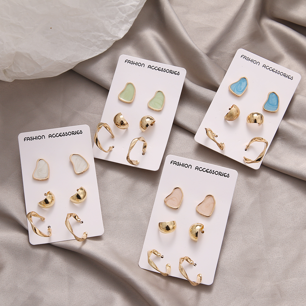 Fleepmart Delicate Jewelry 3 Sets Earrings Green Blue Pink Enamel Small stud Earrings Golden Jewelry For Women Student Gifts