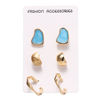 Fleepmart Delicate Jewelry 3 Sets Earrings Green Blue Pink Enamel Small stud Earrings Golden Jewelry For Women Student Gifts