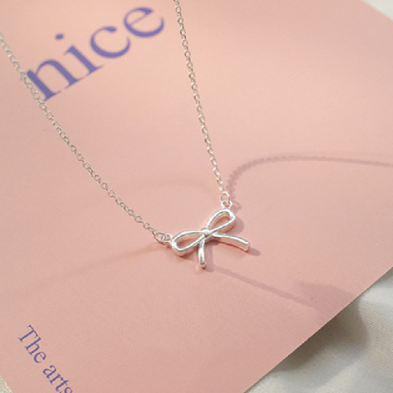 Fleepmart Delicate Silver Color Bowknot Pendant Necklaces Women Unique Design Handmade Jewelry Gift