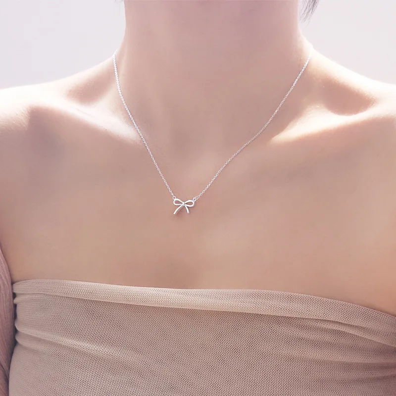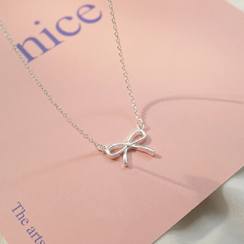 Fleepmart Delicate Silver Color Bowknot Pendant Necklaces Women Unique Design Handmade Jewelry Gift