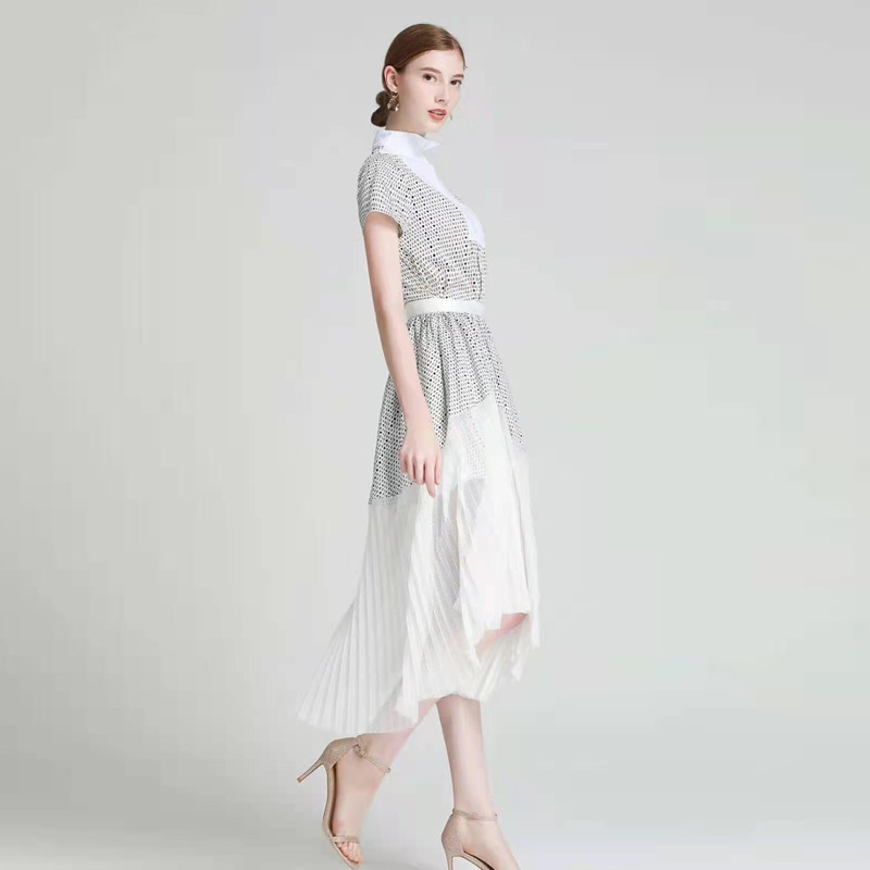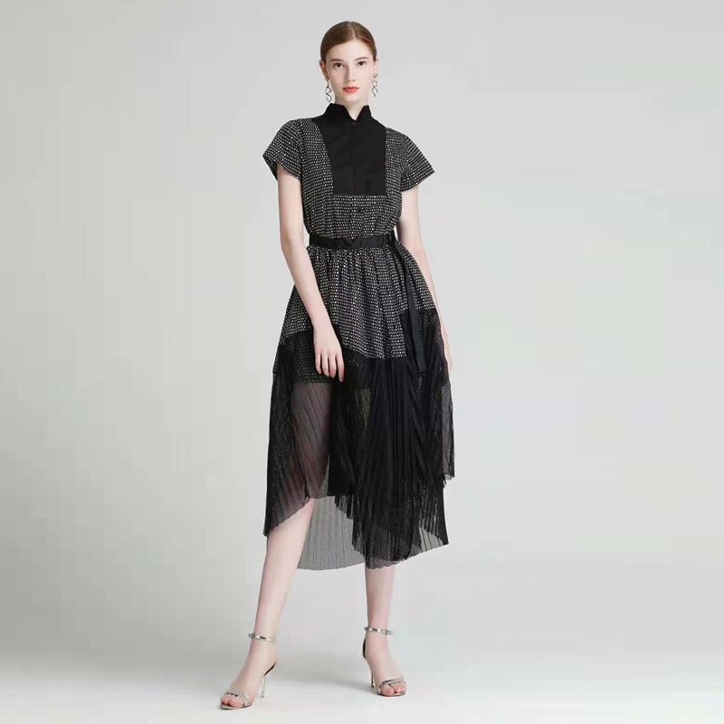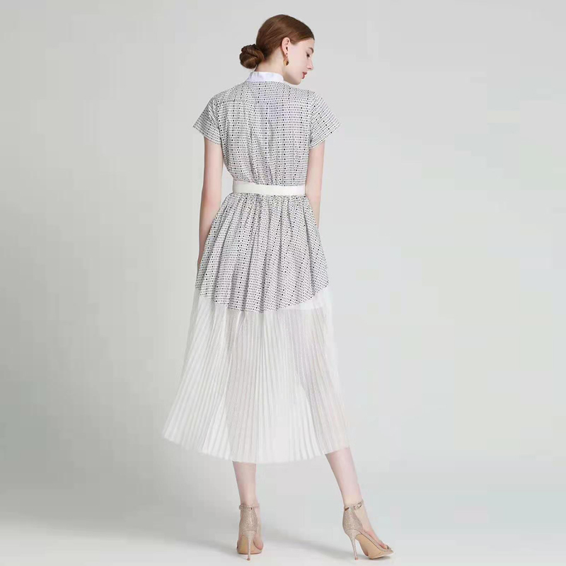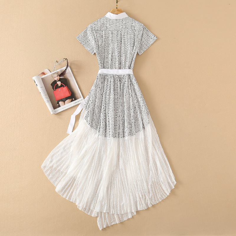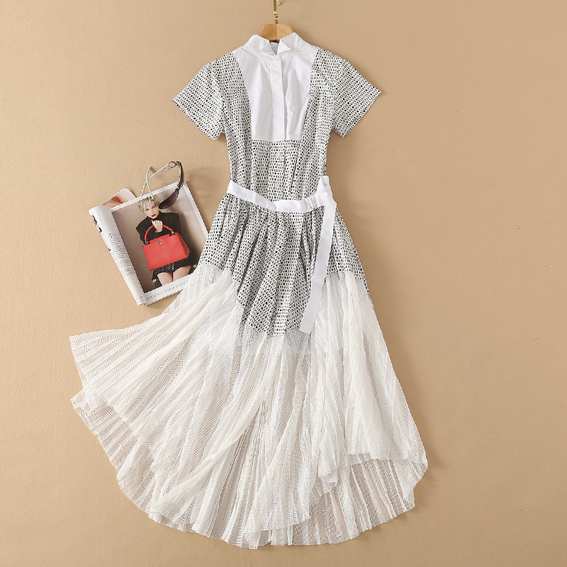 Fleepmart Designer Runway Spring Summer New Women'S Short-Sleeved Letters Printed Mesh Patchwork Belt Slim Party Midi Dress