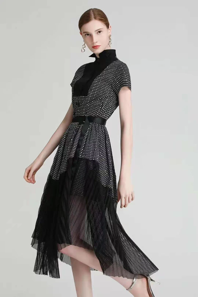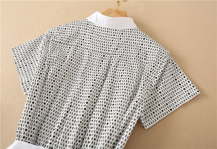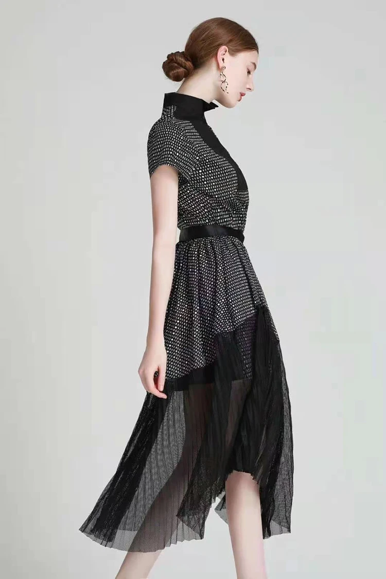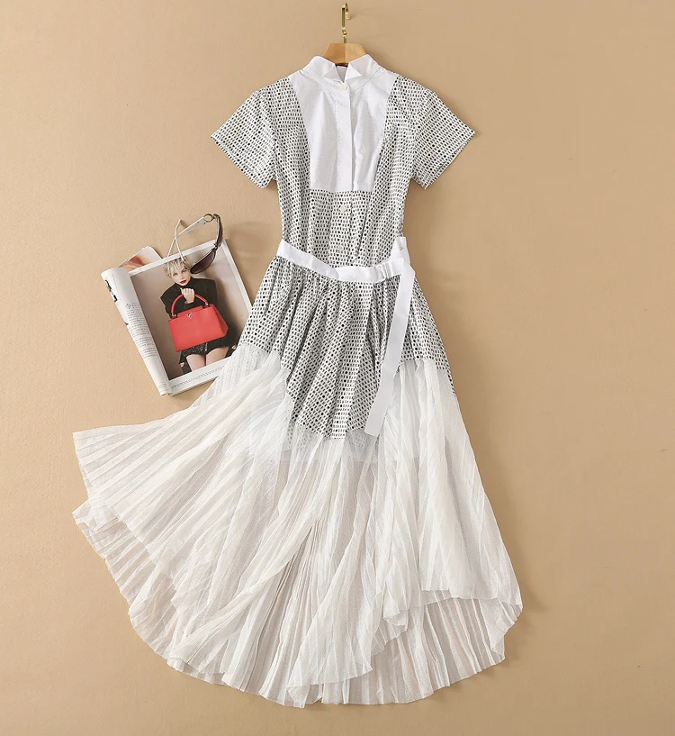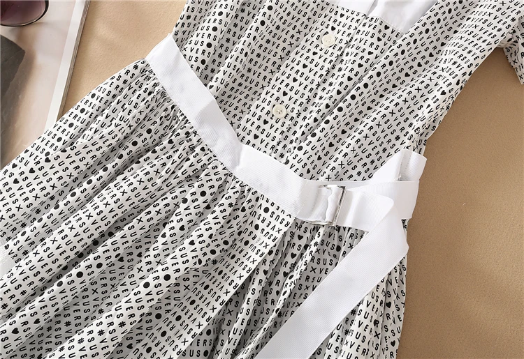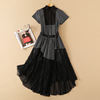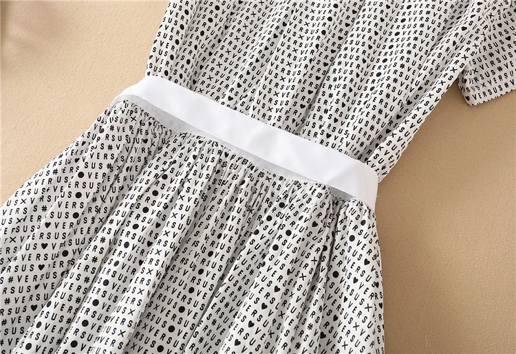 Fleepmart Designer Runway Spring Summer New Women'S Short-Sleeved Letters Printed Mesh Patchwork Belt Slim Party Midi Dress