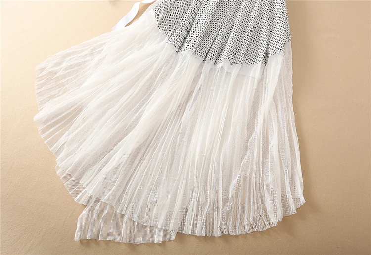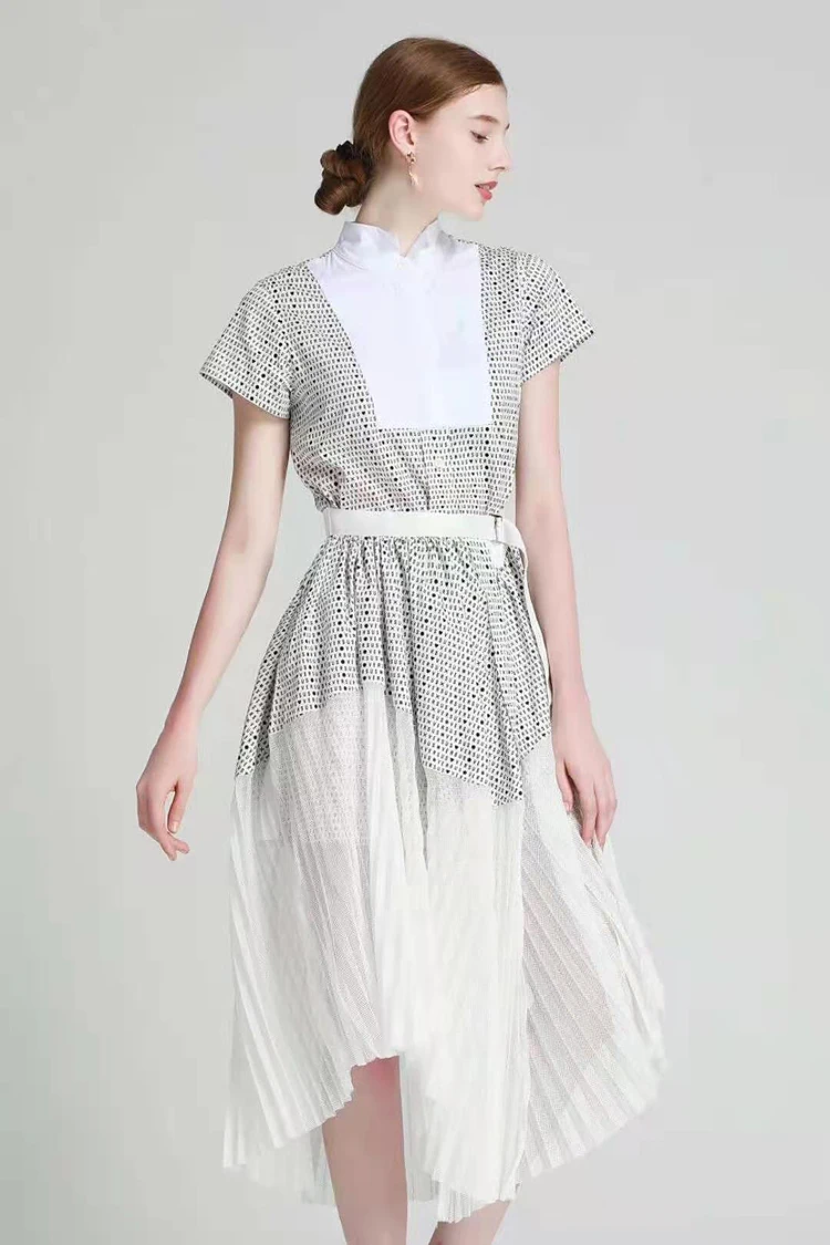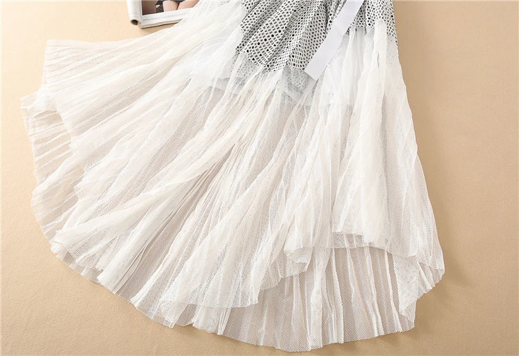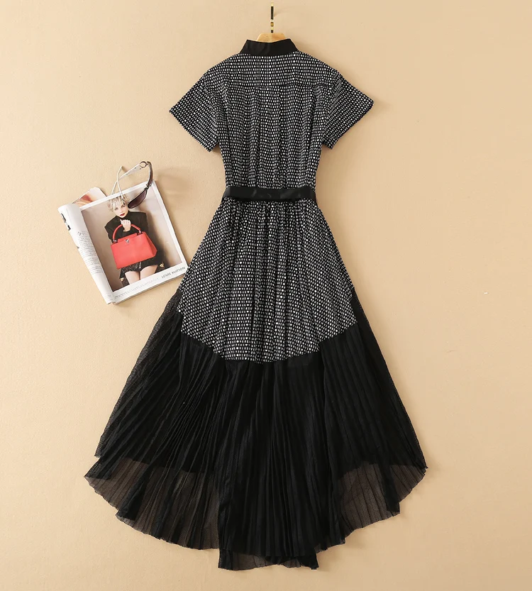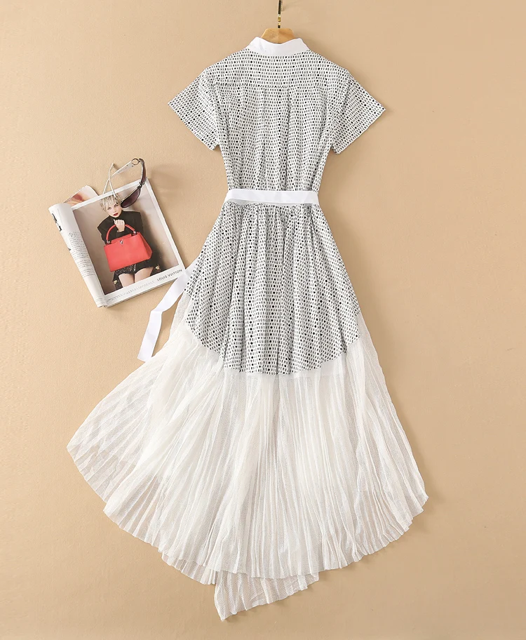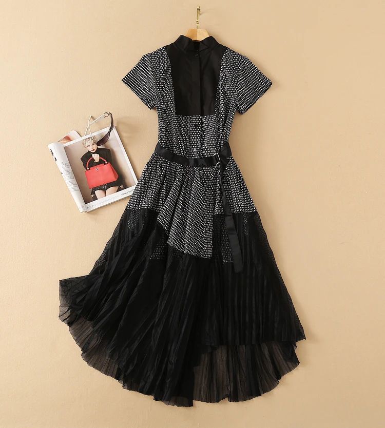 Fleepmart Designer Runway Spring Summer New Women'S Short-Sleeved Letters Printed Mesh Patchwork Belt Slim Party Midi Dress