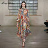 CMFleepmart Designer Women Spring Summer Lapel Single Breasted Lantern Long Sleeve Vintage Print Dress