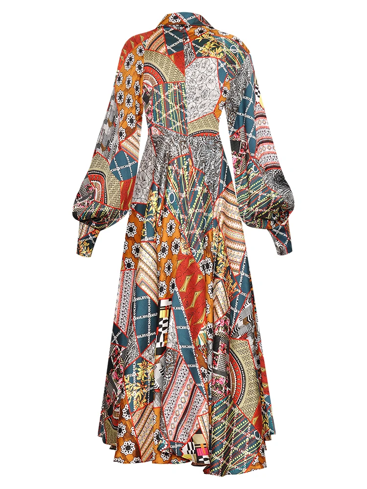 Fleepmart Designer Women Spring Summer Lapel Single Breasted Lantern Long Sleeve Vintage Print DressFleepmart Designer Women Spring Summer Lapel Single Breasted Lantern Long Sleeve Vintage Print Dress