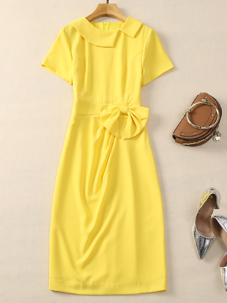 Fleepmart Designer Workplace Runway Sexy Female Spring Summer High Quality Fashion Yellow Girls Sexy Bow Slim Fit Sweet Pencil Midi Dress