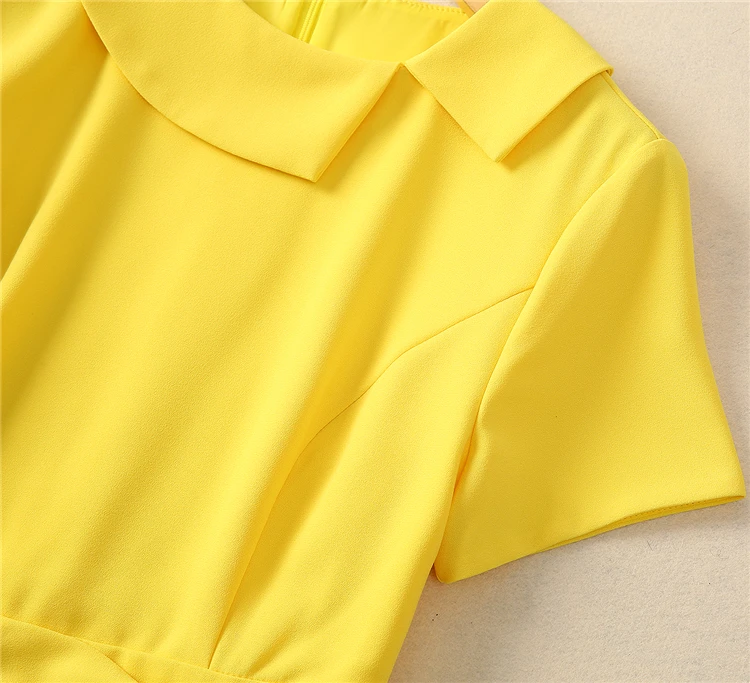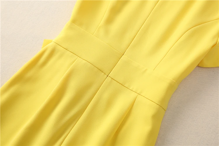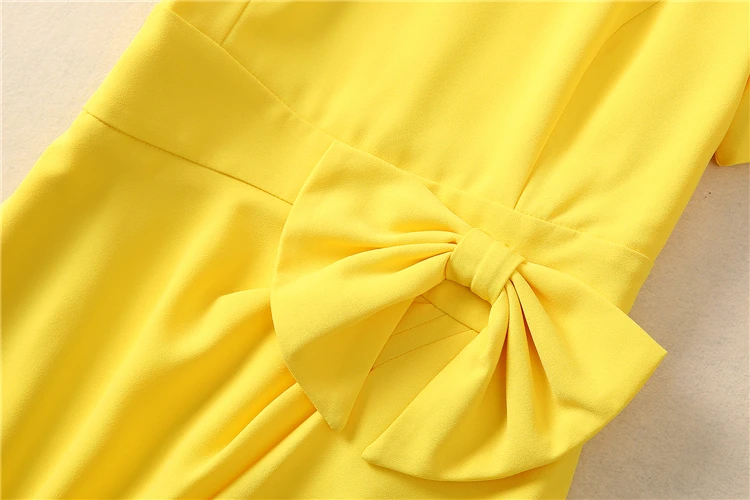 Fleepmart Designer Workplace Runway Sexy Female Spring Summer High Quality Fashion Yellow Girls Sexy Bow Slim Fit Sweet Pencil Midi Dress