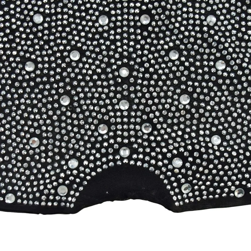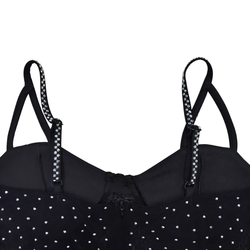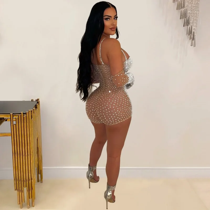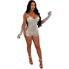 Fleepmart Diamonds Sheer Mesh Camis Playsuits with Gloves Women Sexy Strapless Spaghetti Straps Backless Club Party Romper Overalls