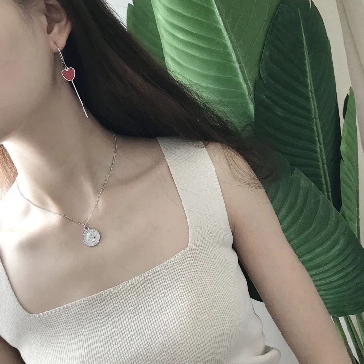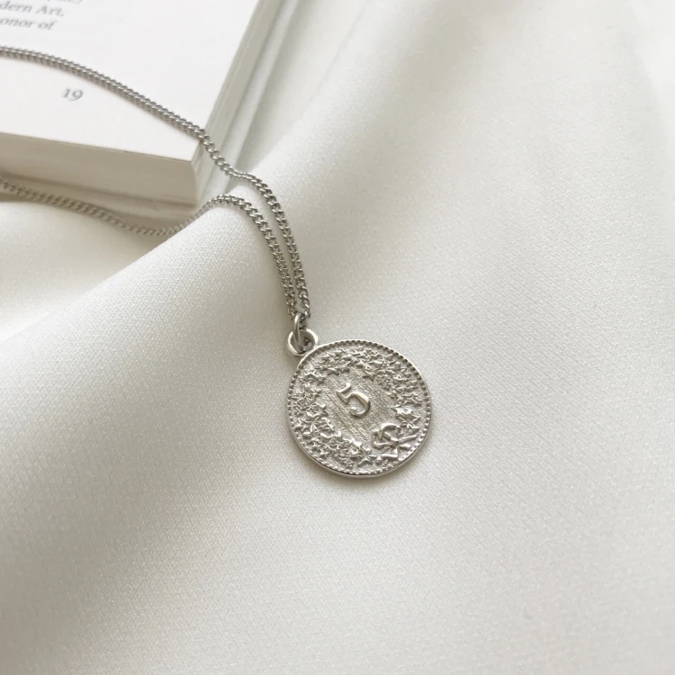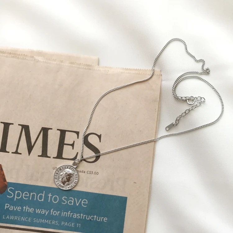 Fleepmart Distressed Retro Dollar Round Coin Queen Avatar 925 Sterling Silver Temperament Personality Fashion Female Necklace
