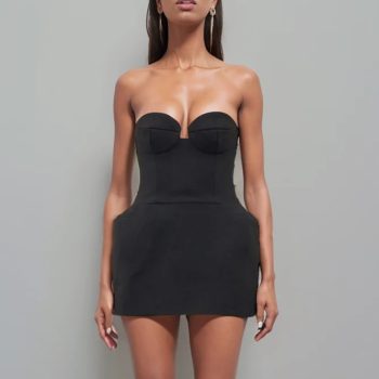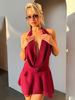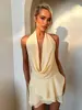 Fleepmart Draped Sexy Backless Halter Mini Women’s Elegant See Through Deep V Neck Mesh Holiday Beach Dress