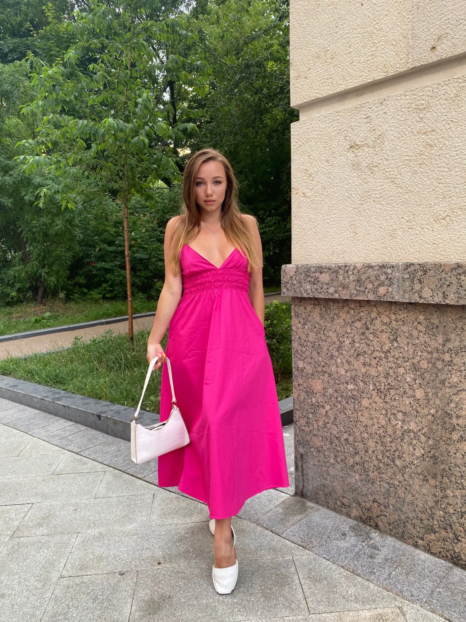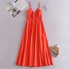 Fleepmart Elastic Smocking Green Cotton V Neck Summer Women’s Dress Sleevless Long Green Maxi Casual Strapy Dress Solid Female