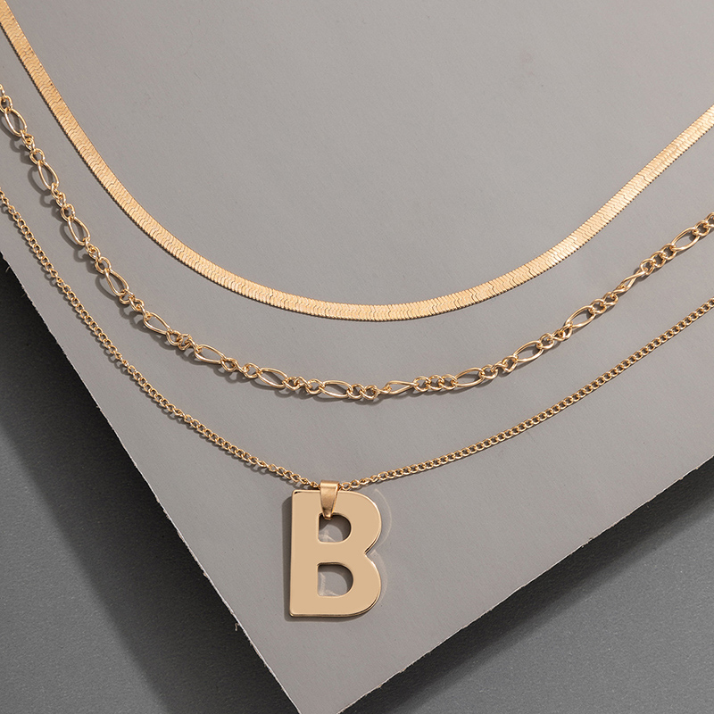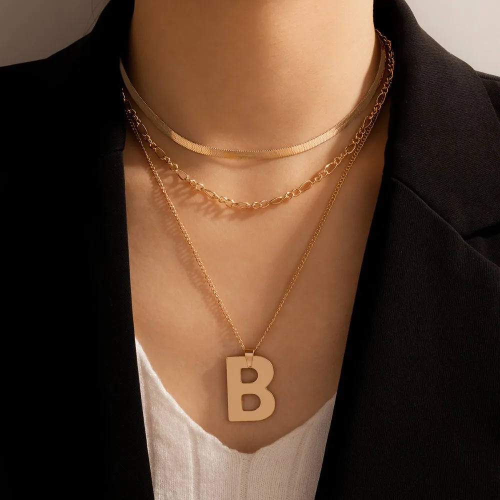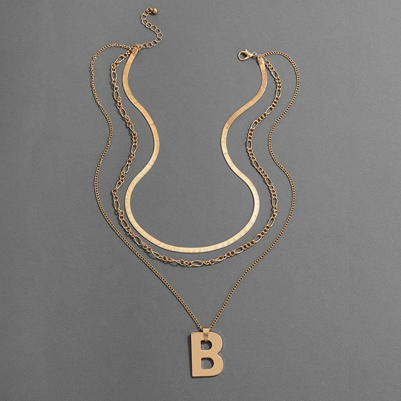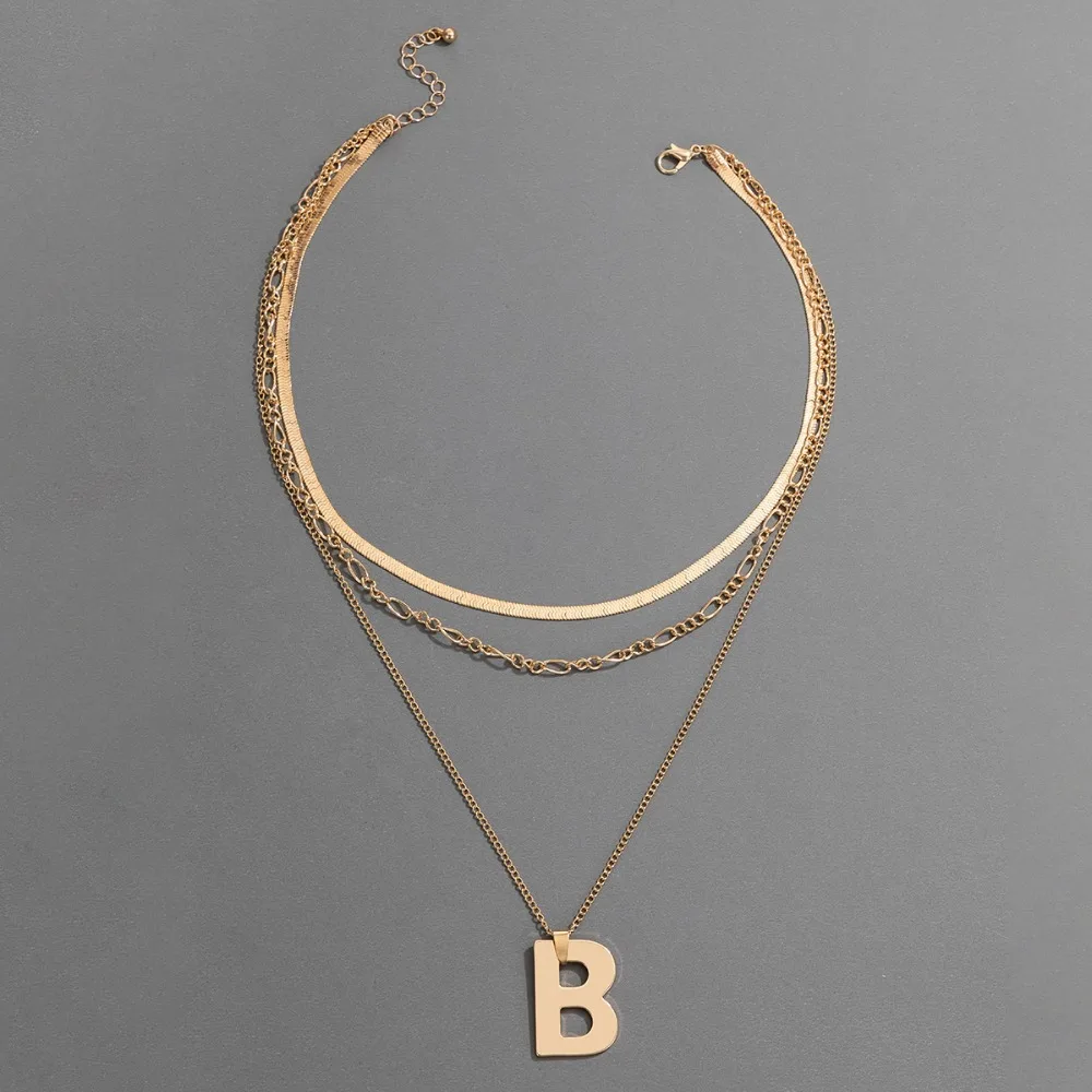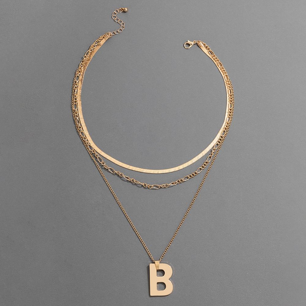 Fleepmart Elegance Letter B Pendant Necklace for Women Punk Multilayer Sweater Chain Gold Color Alloy Metal Jewelry Collar