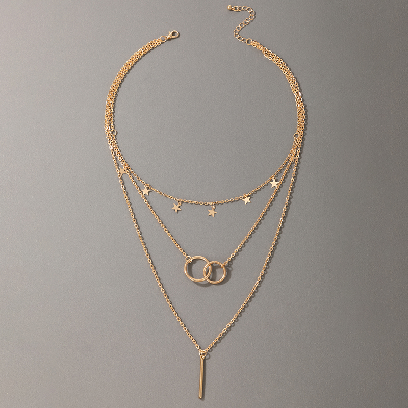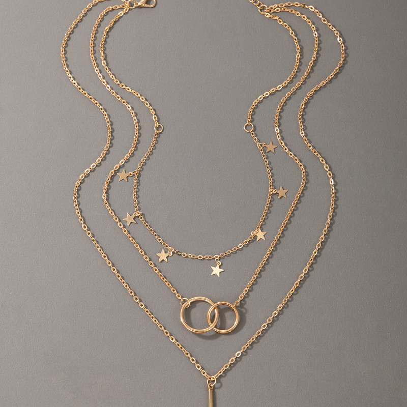 Fleepmart Elegance Star Geoemtric Pendant Necklace for Women Hollow Geometric Multi-layer Geometric Jewelry Gift Collar
