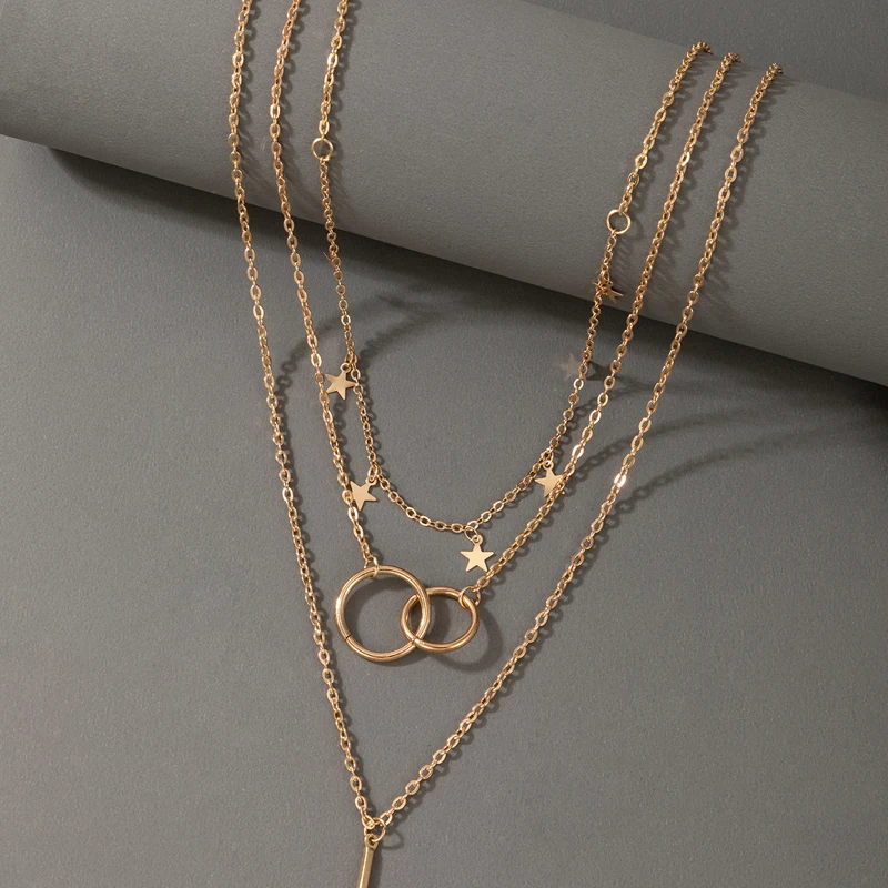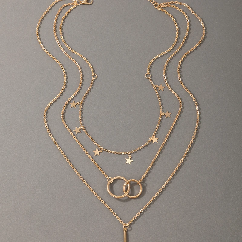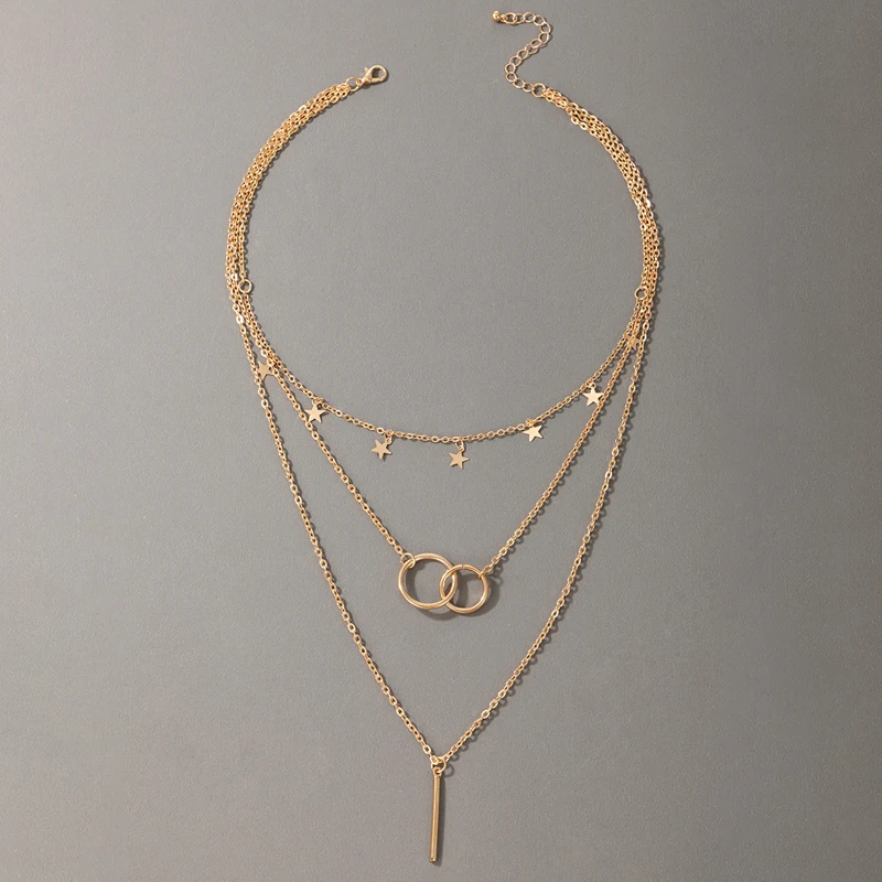 Fleepmart Elegance Star Geoemtric Pendant Necklace for Women Hollow Geometric Multi-layer Geometric Jewelry Gift Collar