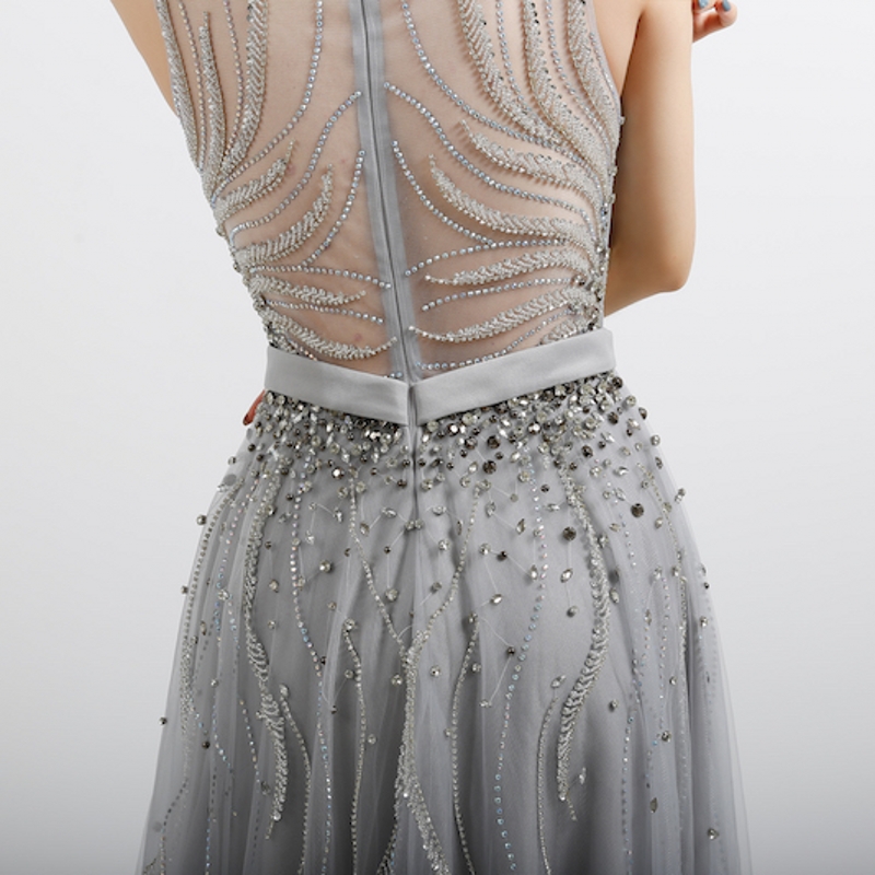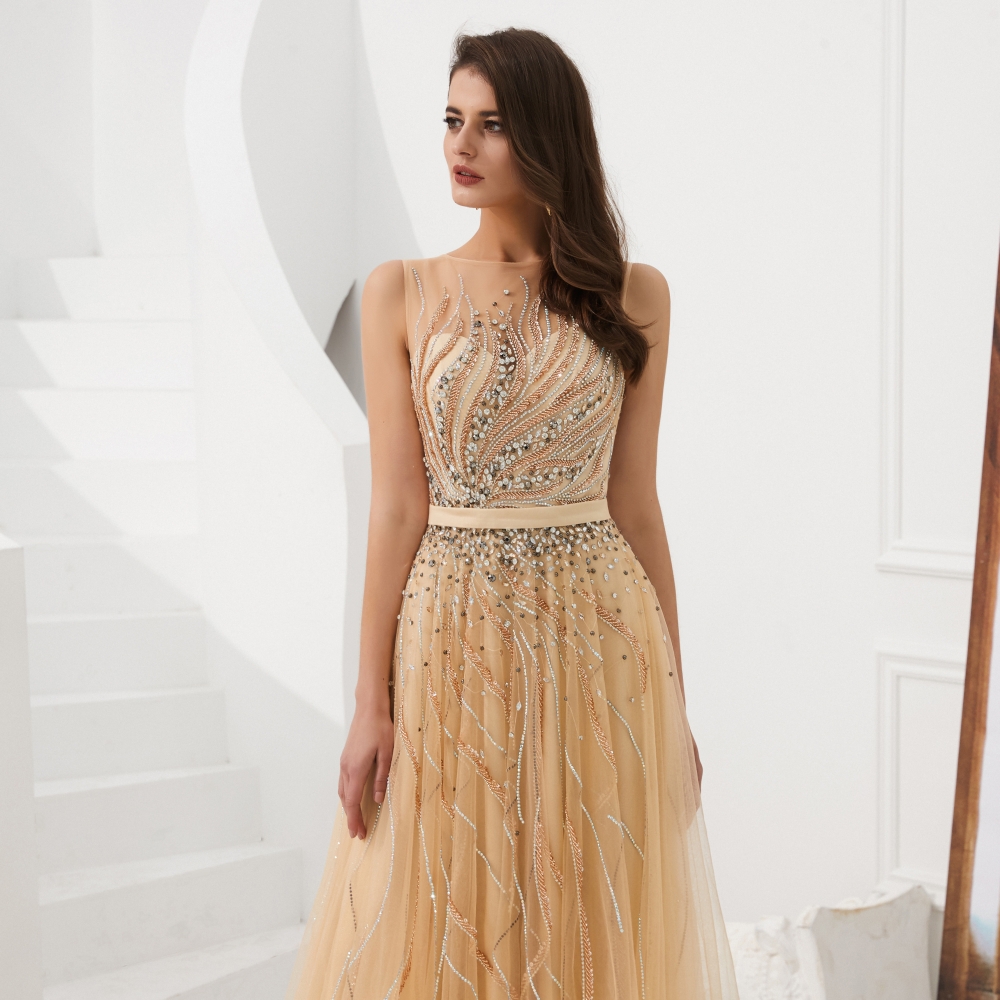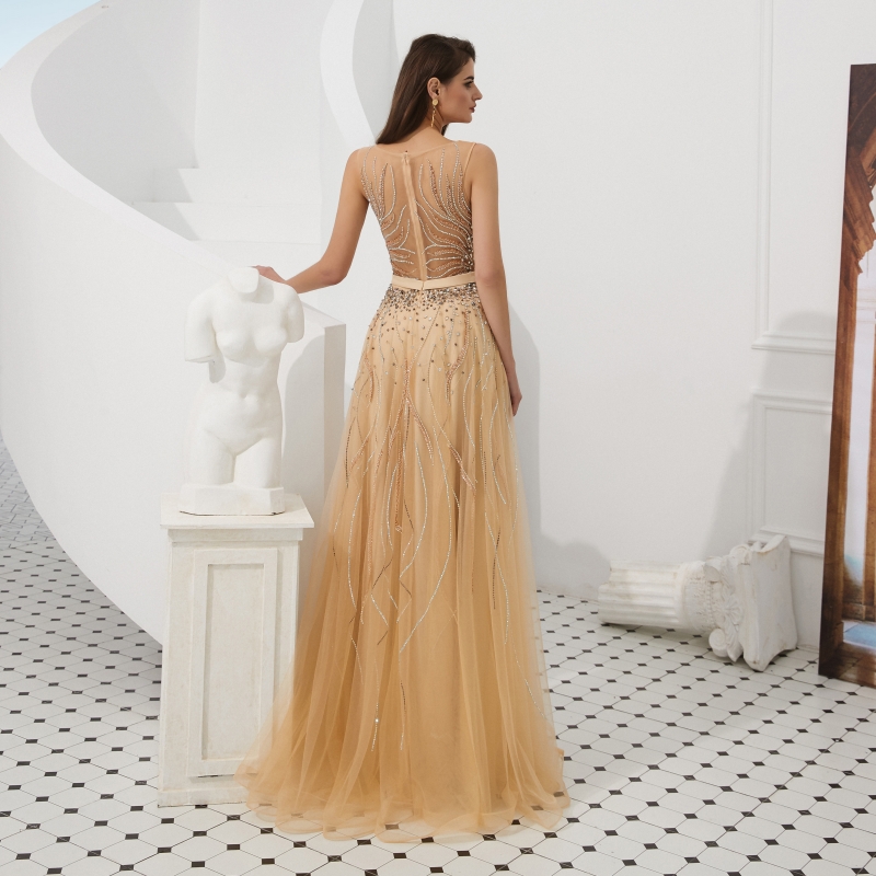 Fleepmart Elegant A Line Evening Dresses Long Luxury 2022 Gold Grey Formal Dress for Women Beading Beaded Crystal Long Prom Gown