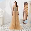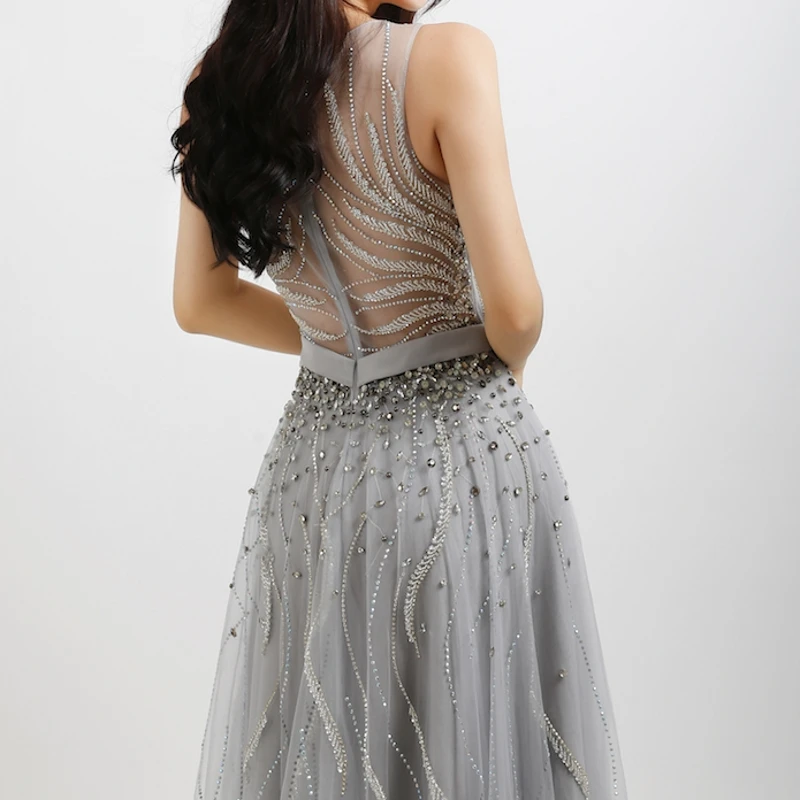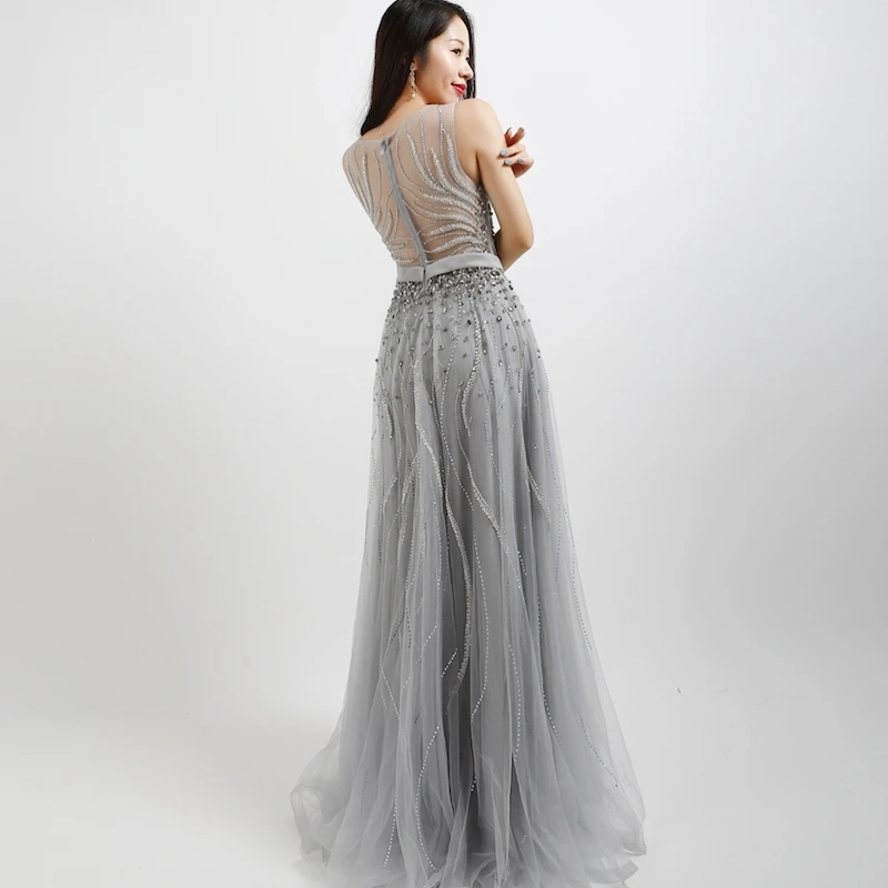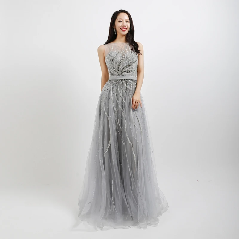 Fleepmart Elegant A Line Evening Dresses Long Luxury 2022 Gold Grey Formal Dress for Women Beading Beaded Crystal Long Prom Gown