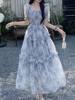 Fleepmart Elegant and Chic Women Summer Dress New Vintage A-Line Floral Print Ruffler Wedding Party Prom Clothes Female Vestidos Long Robe